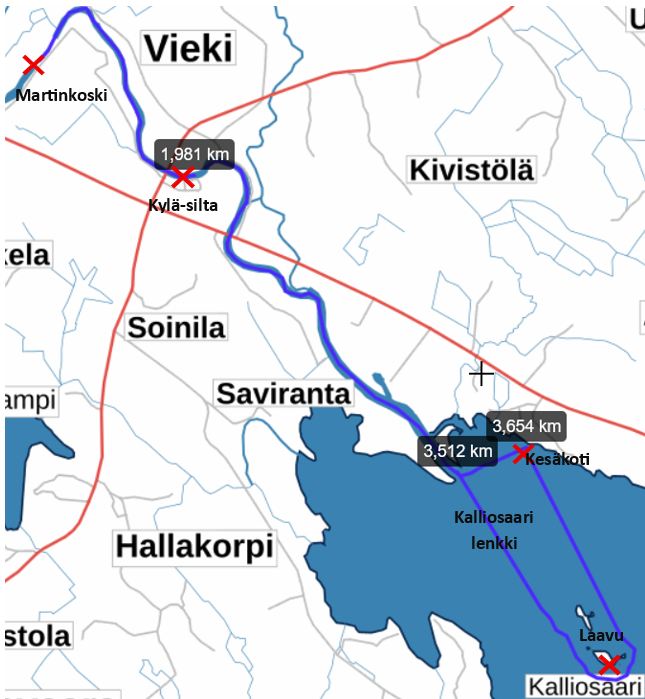 Viekin laduilla pääsee nauttimaan Viekijoen ja Viekijärven maisemista. Reiteille voi lähteä Viekin yhteiskasvimaan pysäköintipaikalta, veneiden vesille laskupaikalta ja tietysti mistä vain reitinvarrelta. Kartalta näet välimatkan eri rastien varrelta. Lisätietoa saat Viekijärven FB-ryhmästä.