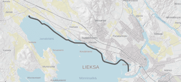 Mantereen puolelle on tampattu selkeä ura kävelijöille, koirakoille ja pyöräilijöille, joten jäälatu sopii monenlaiseen ulkoiluun. Hiljaisuus, kirskuva lumi ja jään alla uinuva järvi tekevät matkasta elämyksen, joka rauhoittaa mielen ja haastaa kehon sopivasti.