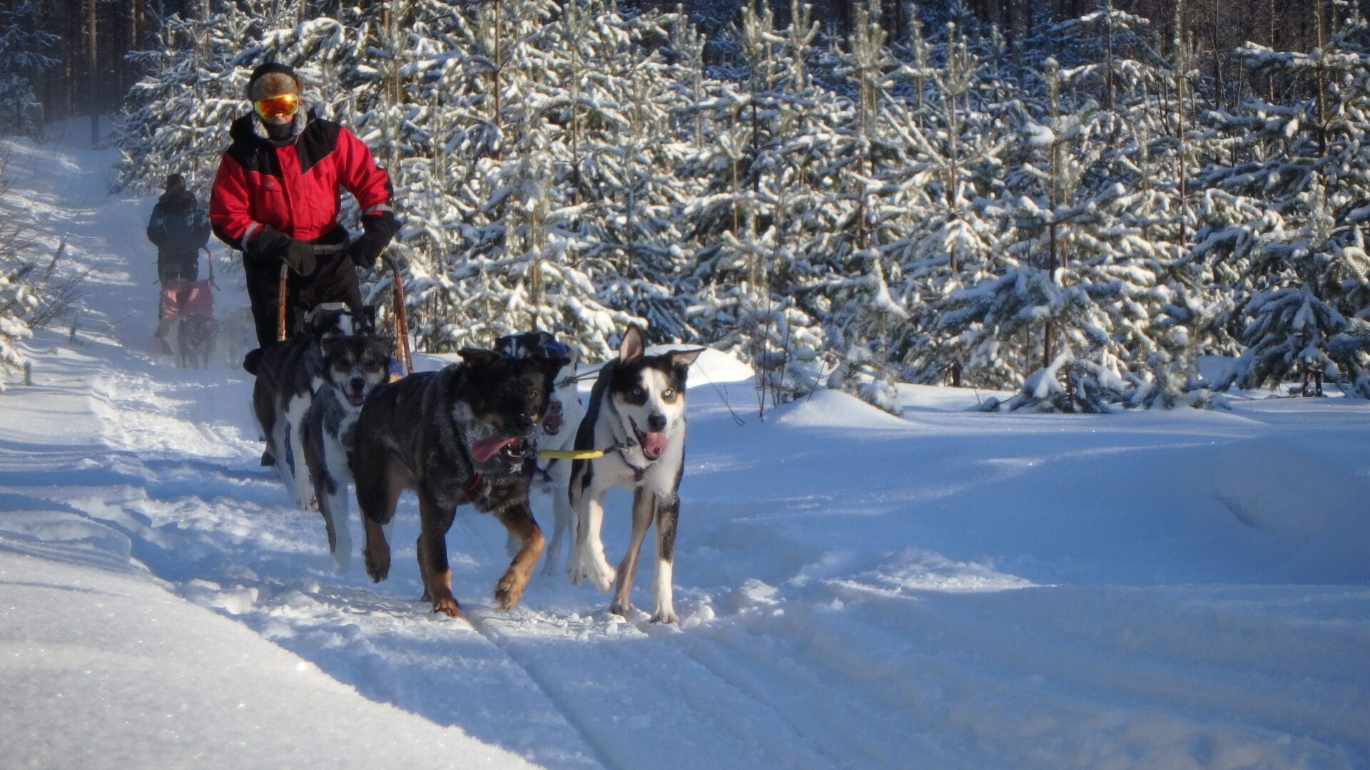 Rauhallista majoittumista ja Huskyfarmi metsämaisemissa Nurmijärven rannalla.