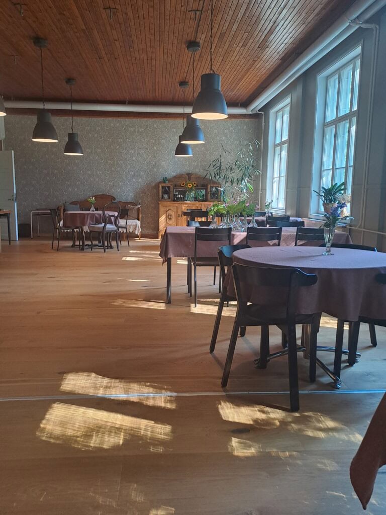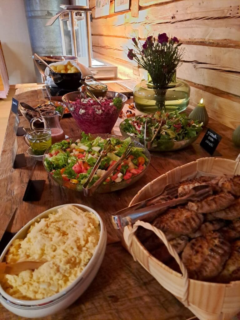 Ruoan valmistuksessa hyödynnämme oman tilan viljoja – ruista, vehnää, ohraa ja kauraa – sekä lähialueen tuottajien ja metsien antimia. Meille tärkeää on lähiruoka ja ruoan alkuperän tunteminen. Tavoitteemme on tarjota aitoja makuja pellolta pitopöytään.